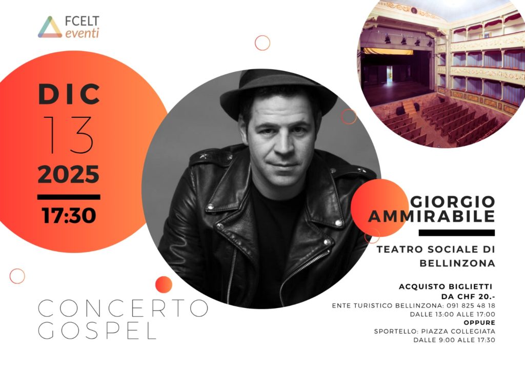 Concerto Gospel con Giorgio Ammirabile nella suggestiva cornice del Teatro sociale di Bellinzona. Giorgio Ammirabile Nato a Firenze il 19 febbraio 1976, sin da bambino si interessa agli studi musicali suonando il pianoforte e dopo pochi anni si iscrive al conservatorio per lo studio del contrabbasso, ma la sua vera passione si rivela il canto. […]
