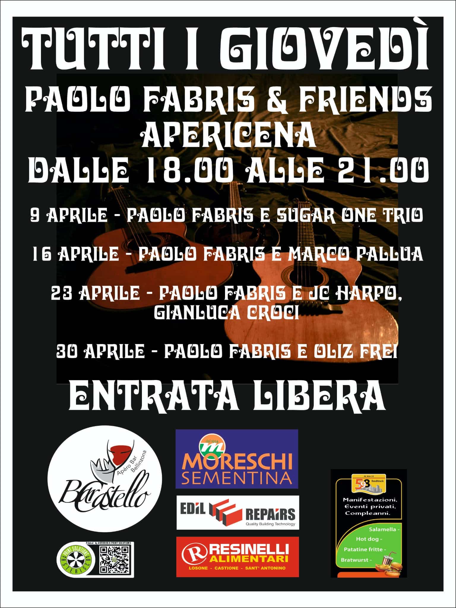 Tutti i giovedì paolo Fabris & Friends presentano un’apericena dalle ore 18:00 alle ore 21:00.