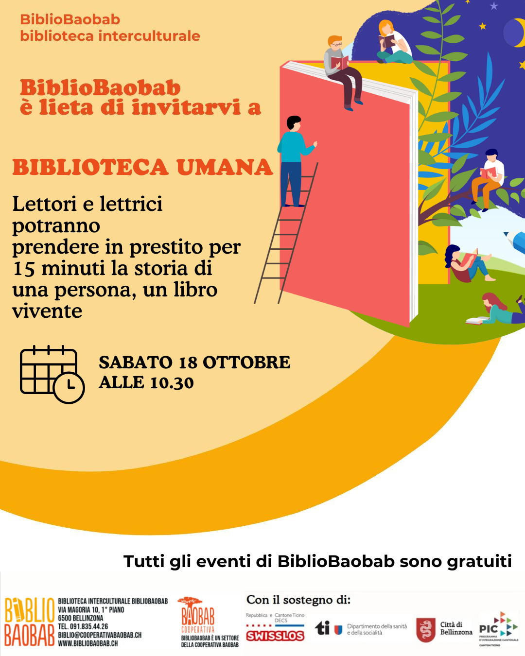 La Biblioteca umana propone al pubblico libri viventi: persone con una storia da condividere. Nello specifico i libri viventi di BiblioBaobab sono persone provenienti da altri Paesi, che hanno vissuto esperienze di migrazione, che hanno origini culturali o religiose variegate, o che hanno vissuto esperienze di confronto interculturale.