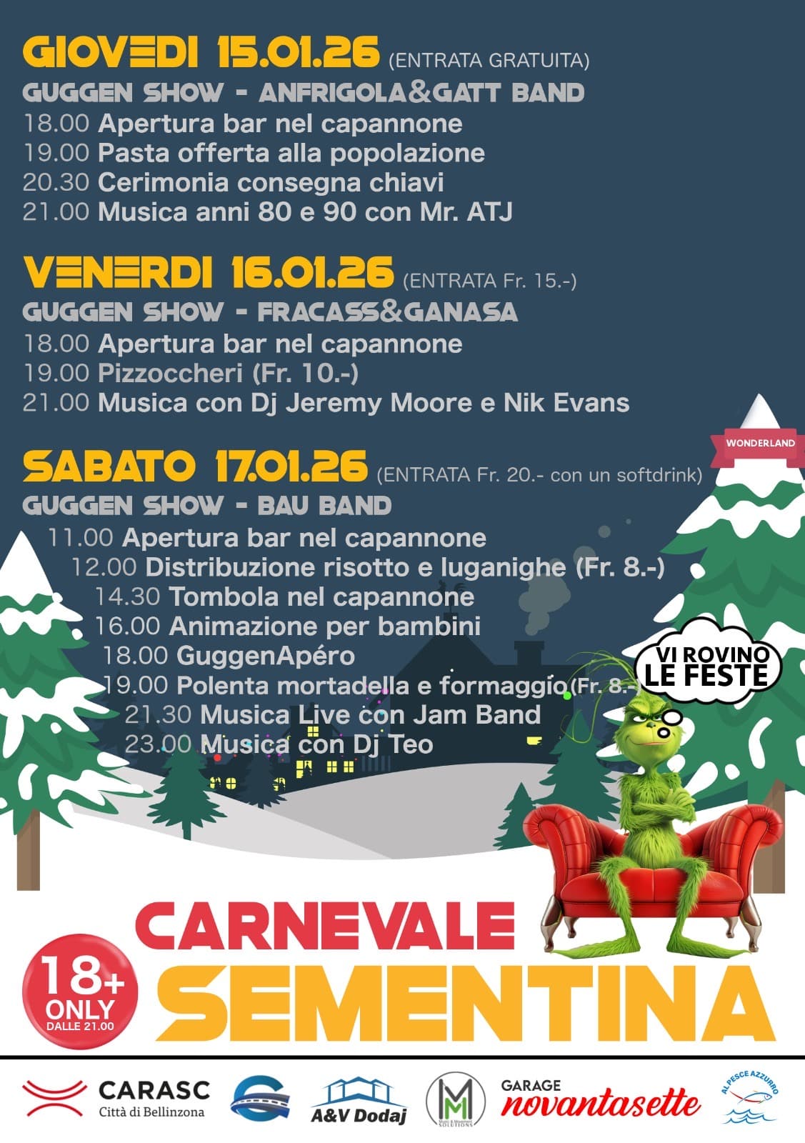Torna il Carnevale di Sementina dal 15 al 17 gennaio!