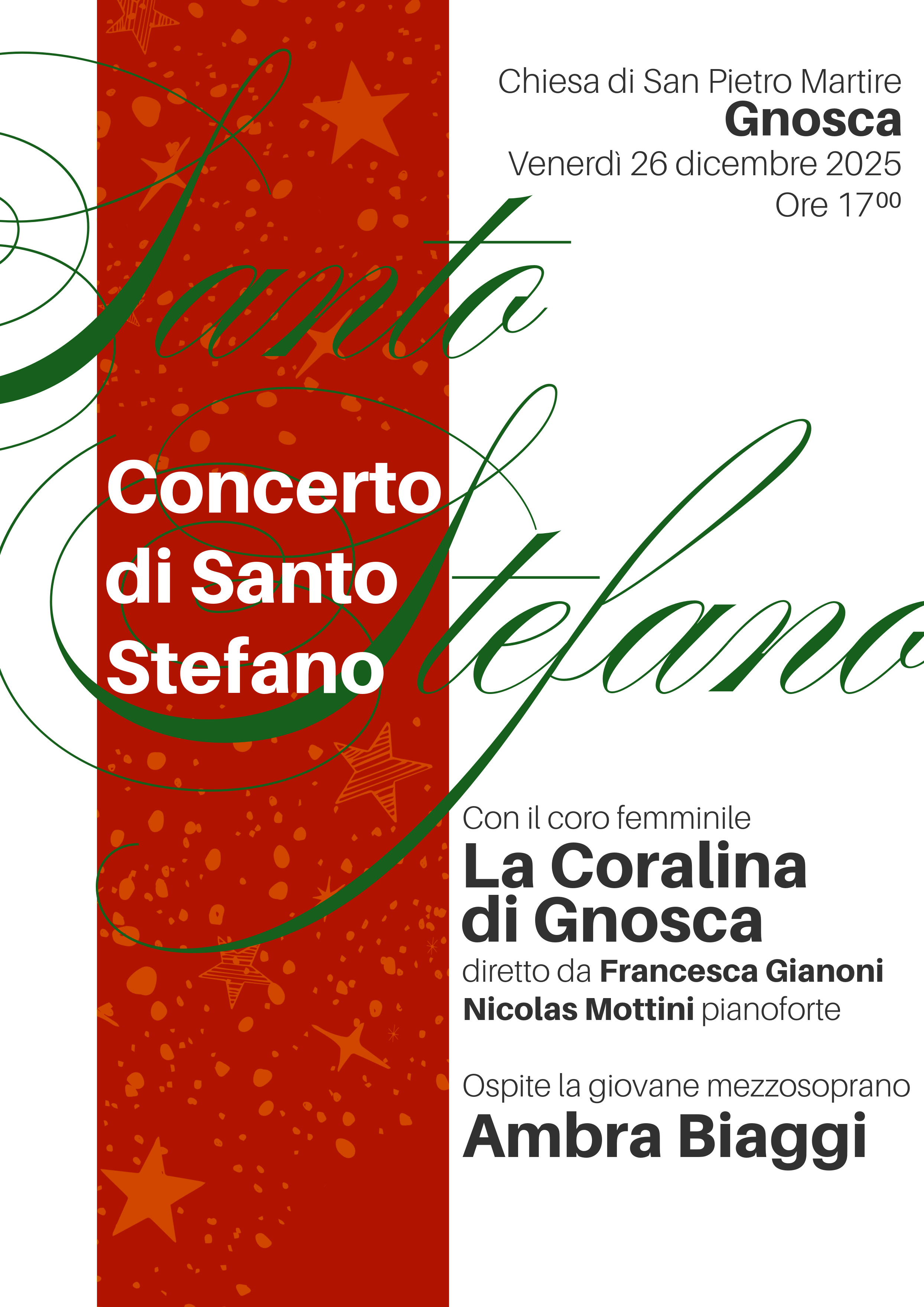 Ospite della serata: la giovane mezzosoprano Ambra Biaggi, che si esibirà con un proprio repertorio e accompagnerà la Coralina in alcuni brani.