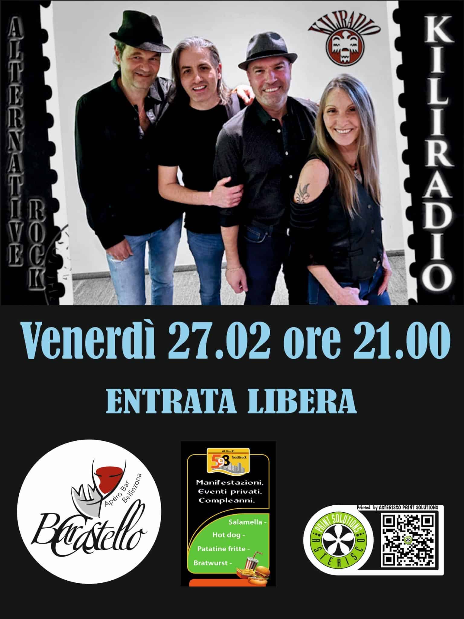 Venerdì 27 febbraio alle ore 21.00 si terrà il concerto dei Kiliradio, band alternative rock. L’evento propone una serata all’insegna della musica dal vivo e del divertimento.