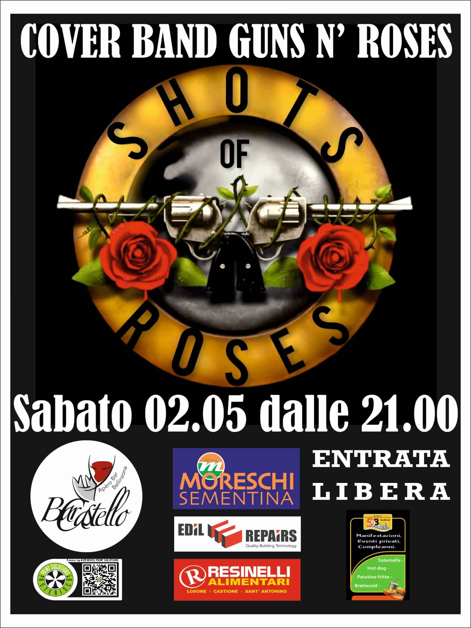 Una serata di musica dal vivo con la cover band dei Guns N’ Roses, Shots of Roses.