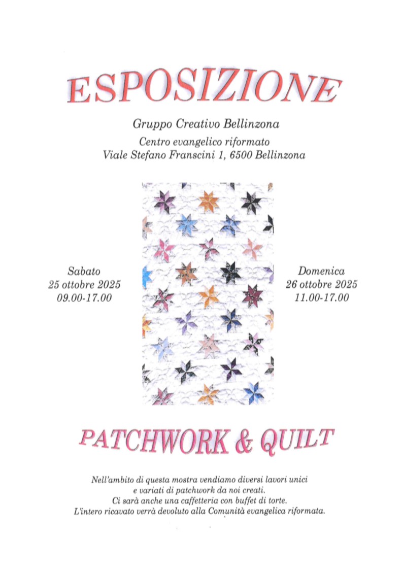 Il gruppo patchwork li espone nella Chiesa Riformata di Bellinzona.