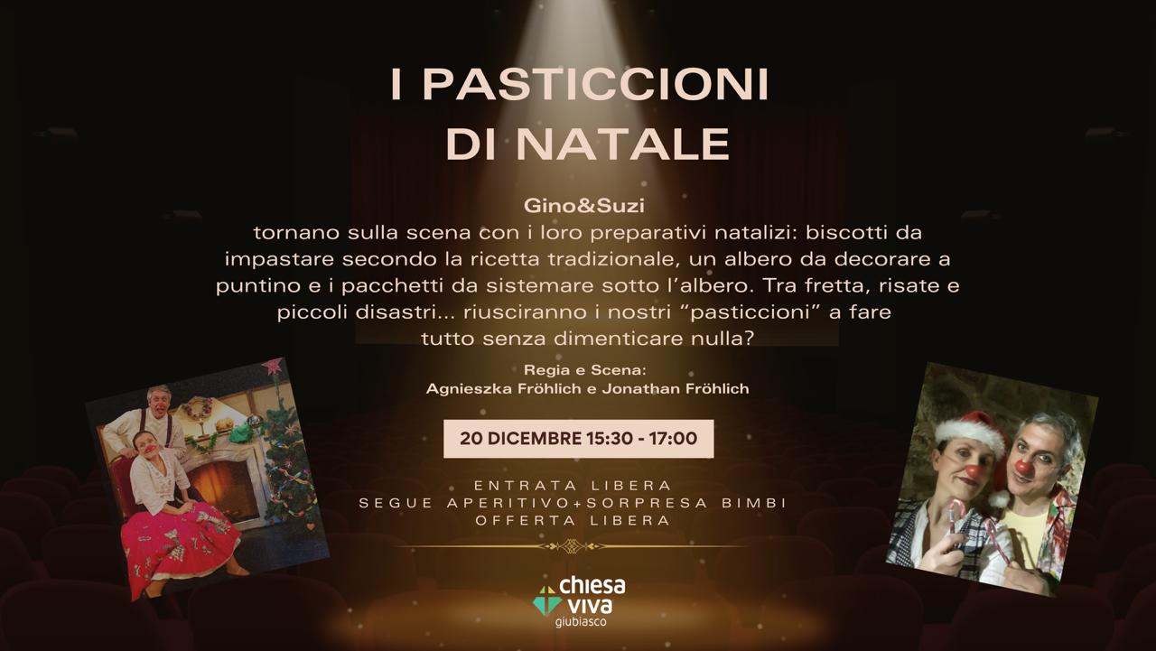 Gino e Suzi tornano sulla scena con i loro preparativi natalizi: biscotti da impastare secondo la ricetta tradizionale, un albero da decorare e i pacchetti da sistemare- Tra fretta, risate e piccoli disastri…riusciranno i nostri “pasticcioni” a fare tutto senza dimenticare nulla? Un teatro divertente per tutta la famiglia!