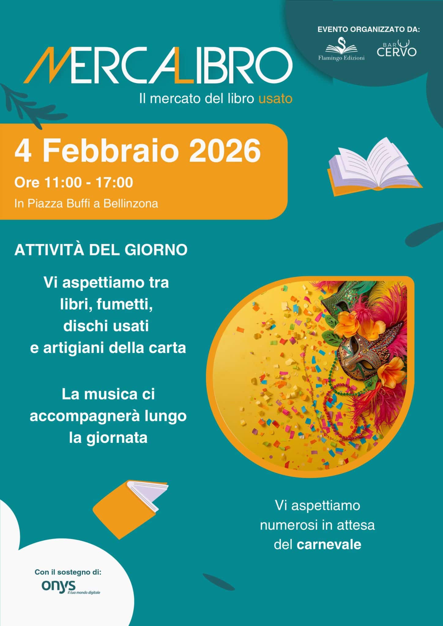 Lo storico mercato del libro usato torna mercoledì 4 febbraio in Piazza Buffi a Bellinzona!