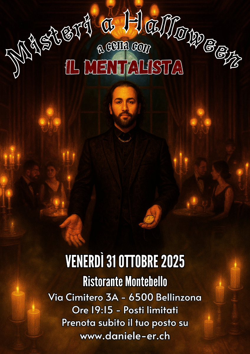 Venerdì 31 ottobre 2025, il Ristorante Montebello, con la sua atmosfera intima e avvolgente, diventerà il palcoscenico di un’esperienza esclusiva, dove la cucina dello chef Ramon Pedrini incontra le arti sottili del Mentalista Daniele Er.