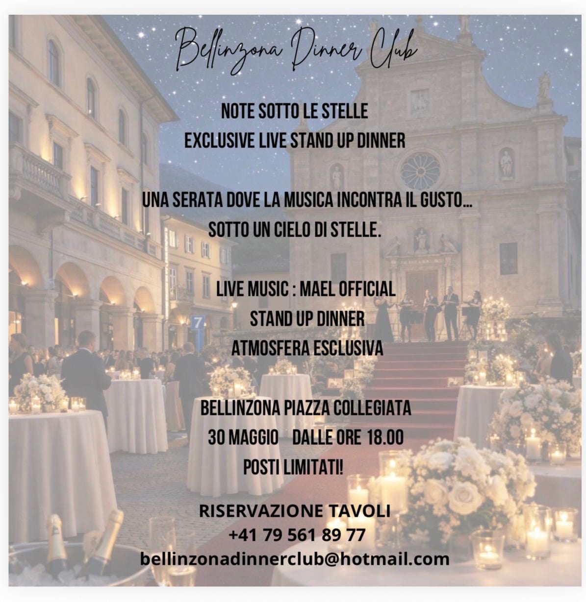 Posti limitati, per la riservazione tavoli contattare +41 79 561 89 77 / bellinzonadinnerclub@hotmail.com