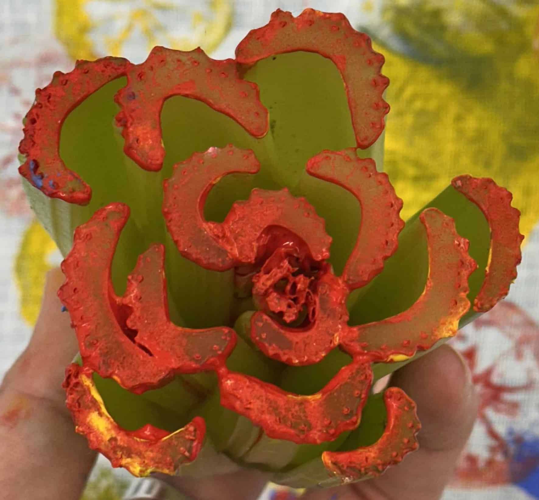 In questo laboratorio i bambini sperimentano la stampa diretta utilizzando scarti di frutta e verdura come matrici, svelandone le forme nascoste e il loro riutilizzo creativo.