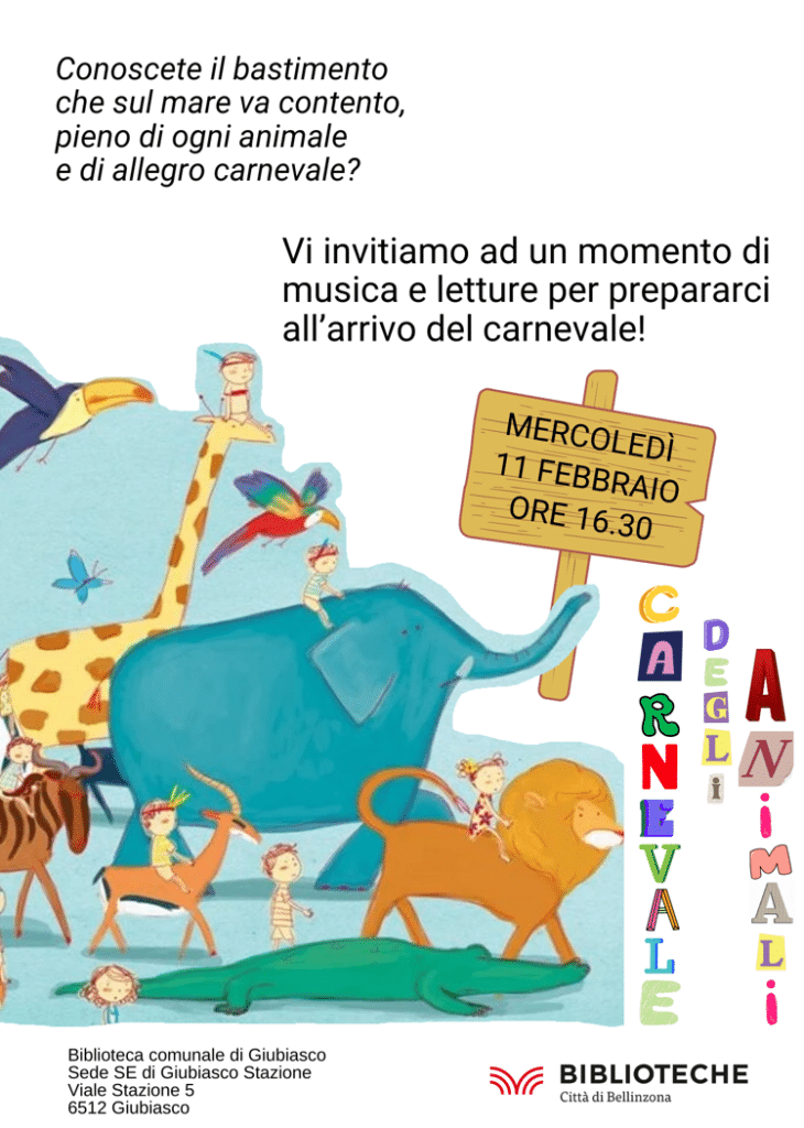 “Conoscete il bastimento che sul mare va contento, pieno di ogni animale e di allegro carnevale?” Vi invitiamo ad un momento di musica e letture per prepararci all’arrivo del carnevale!
