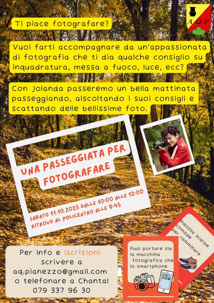Una mattinata in compagnia dell’appassionata di fotografia Jolanda, che ci darà consigli su inquadratura, angolazione, luce, ecc. per scattare delle belle foto, sia con la macchina fotografica che con il telefono cellulare.