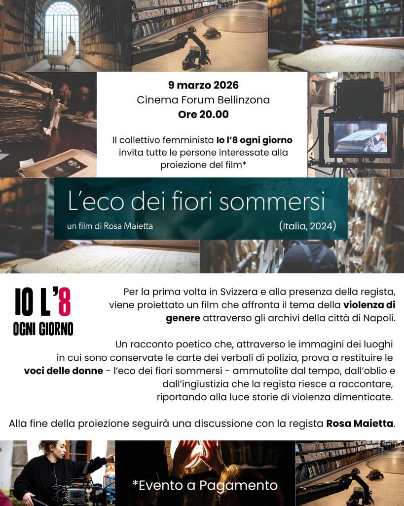 Per la prima volta in Svizzera e alla presenza della regista, viene proiettato un film che affronta il tema della violenza di genere attraverso gli archivi della città di Napoli. Un racconto poetico che, attraverso le immagini dei luoghi in cui sono conservate le carte dei verbali di polizia, prova a restituire le voci delle […]